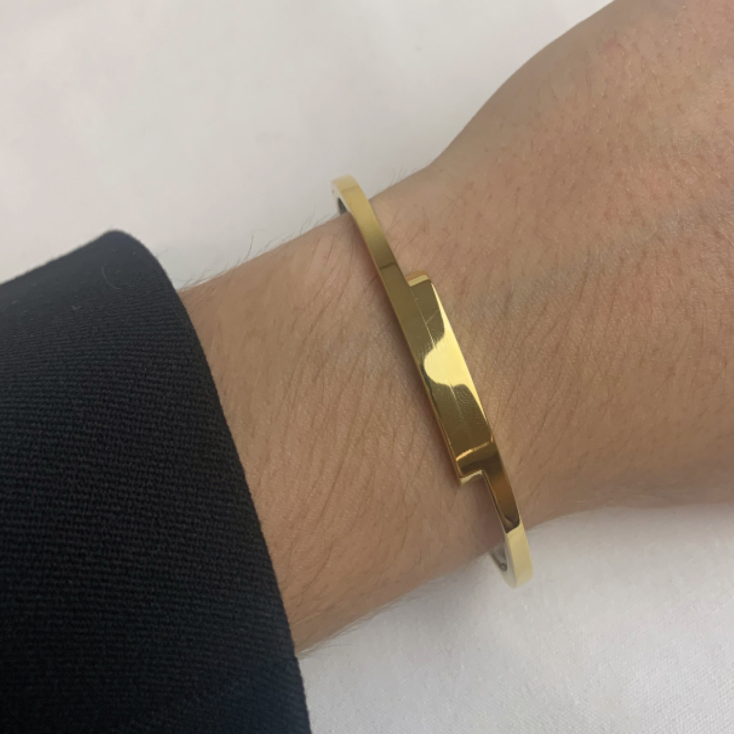Deze unieke titanium bangle armband van Boccia Titanium is een mooie toevoeging aan je sieradencollectie! Wat deze goudkleurige titanium armband uniek maakt, is dat hij aan de bovenkant parallel loopt in tegengestelde richting. Een chique geheel. De doorsnee is 60mm. Combineer de armband met bijpassende sieraden voor een complete look.