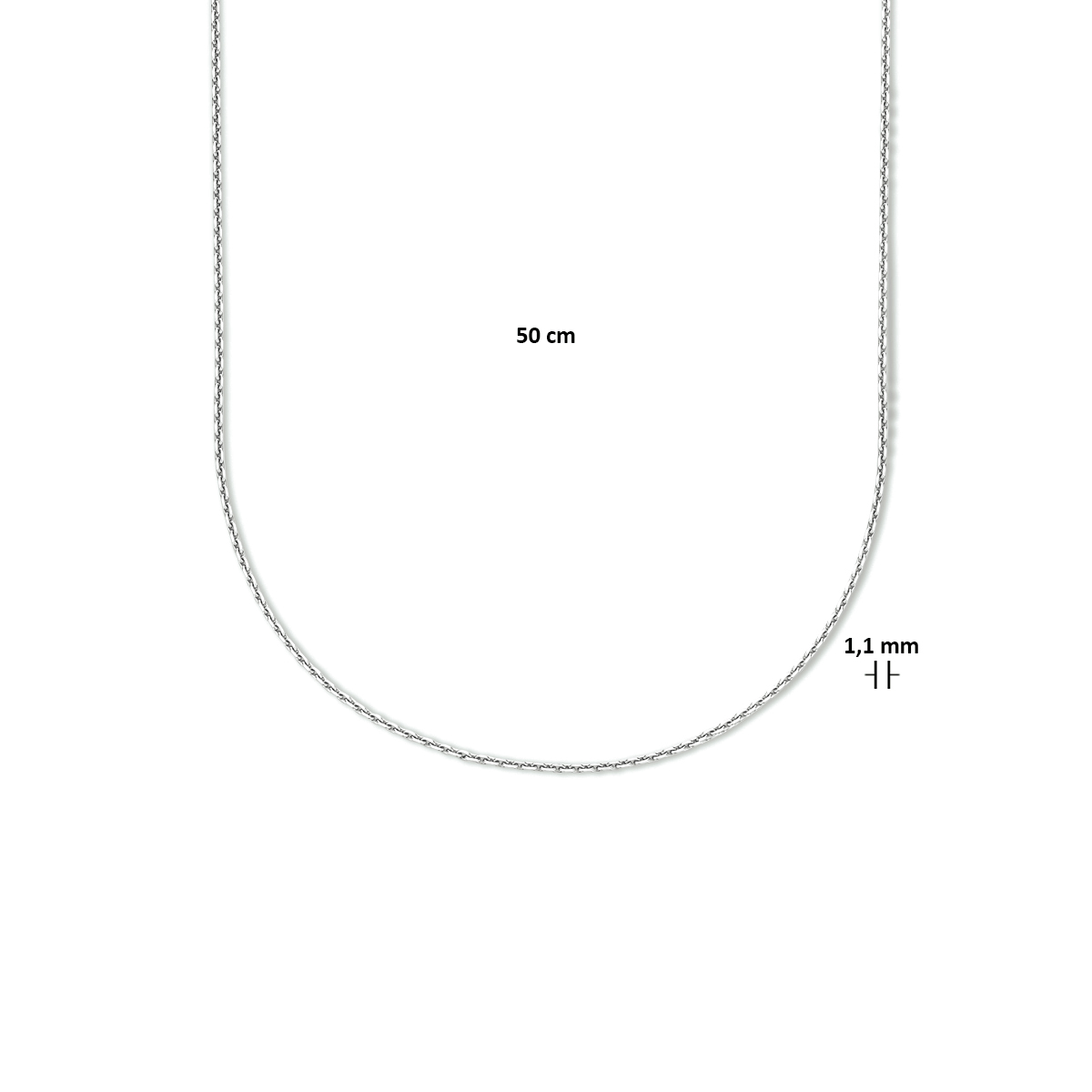 Gerhodineerd 925 zilveren anker collier met een schakelbreedte van 1.1mm en een gediamanteerde afwerking. Het collier heeft een draaglengte van 50cm en een stevige karabijn sluiting.