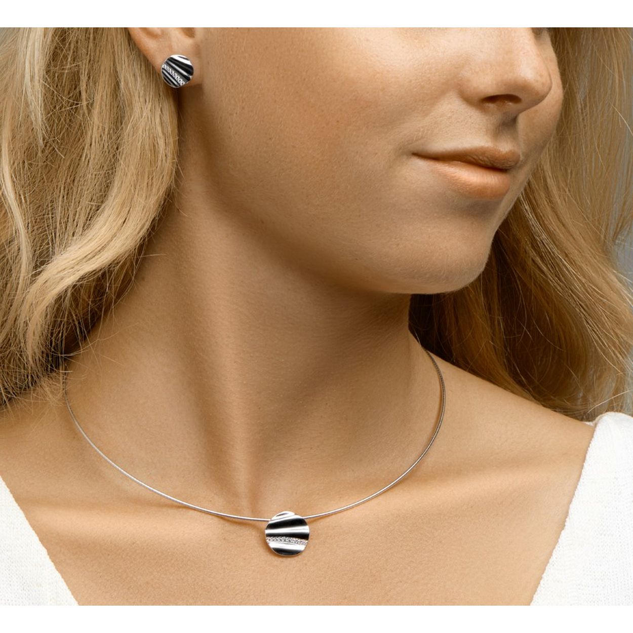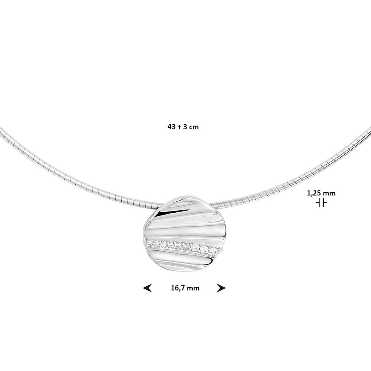 Gerhodineerd 925 zilveren collier uitgevoerd met een hanger in de vorm van een rondje met daarin een schitterende zirkonia rij. Het collier heeft een draaglengte van 43cm met een extensie van 3cm en een stevige karabijn sluiting. Het rondje heeft een diameter van 16.7mm.