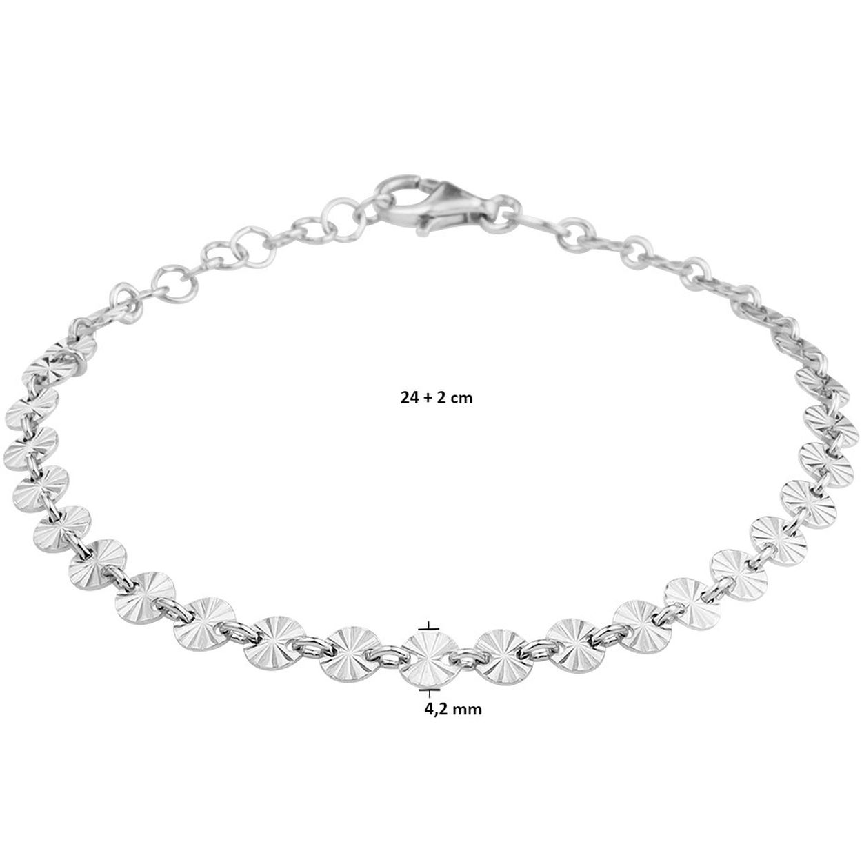 Gerhodineerd 925 zilveren enkelbandje met een breedte van 4.2mm en een stevige karabijn sluiting. Het enkelbandje heeft een draaglengte van 24cm met een extensie van 2cm.