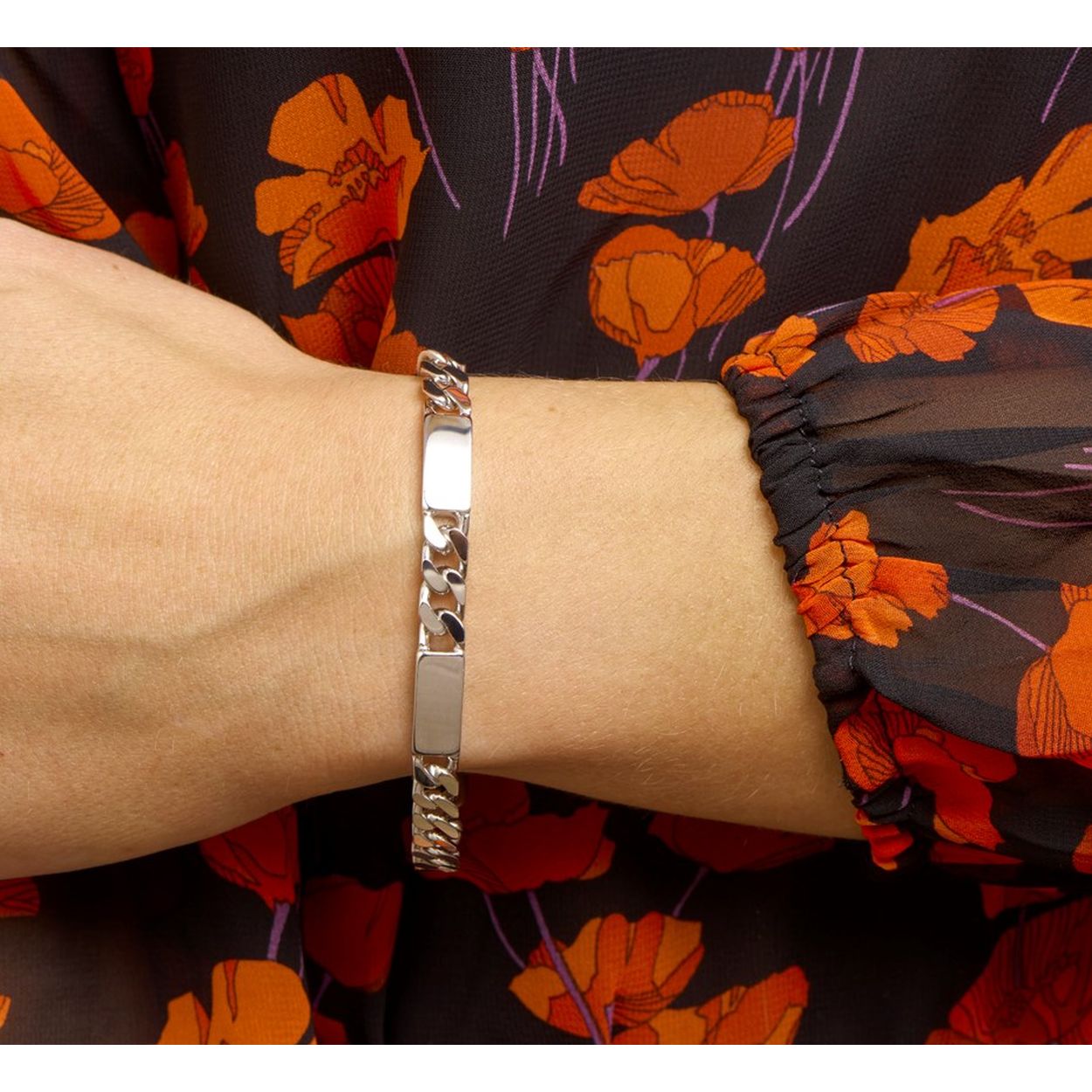 Gerhodineerd 925 zilveren graveerarmband met een breedte van 7mm en een stevige karabijn sluiting. De armband heeft een draaglengte van 20cm.
