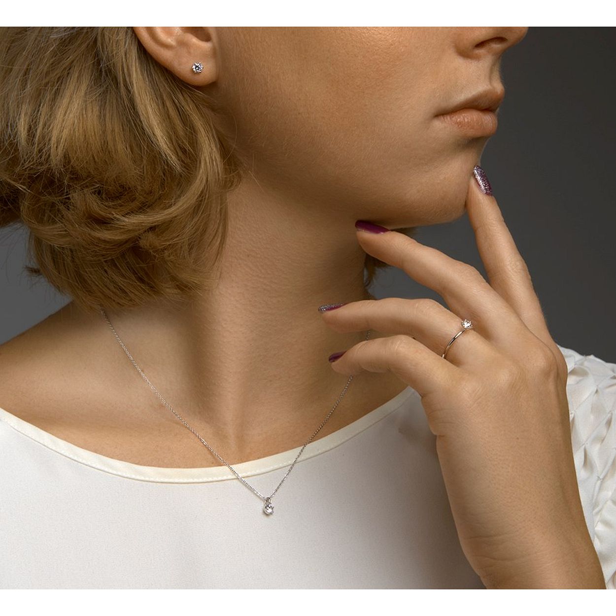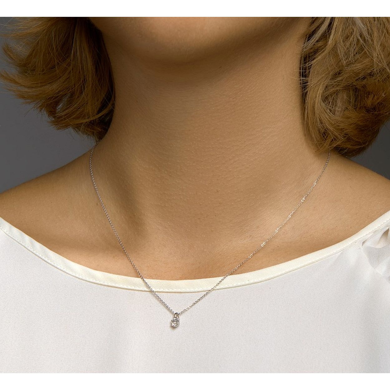 Klassieke 6-poots solitaire hanger, gezet met een +/- 0,25 ct F/Vs1 Made Diamond. Made Diamonds zijn diamanten die ontstaan in een laboratorium. Onder extreem hoge druk en temperatuur wordt het natuurlijk ontstaansproces nagebootst met als eindresultaat een diamant met dezelfde chemische eigenschappen maar met een andere oorsprong. Deze diamanten vallen in een reeks van steengrootten vari�rend tussen de 0,23 ct en 0,29 ct.
