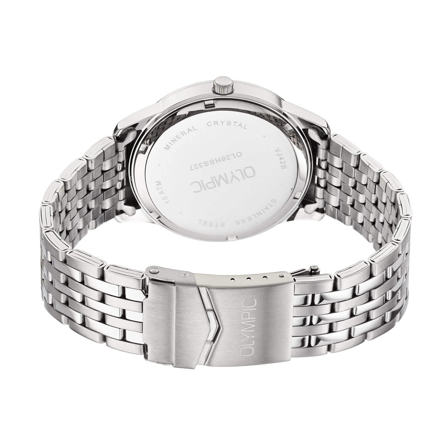 Dit unieke Olympic model met artikelnummer: OL26HSS327 is een sportief herenhorloge. Het horloge heeft een stalen kast met een gladde bezel en een witte wijzerplaat met een datum en duidelijke cijfers en wijzers. Aan de kast zit een stalen schakelband met een vouwsluiting. Het horloge heeft een mineraalglas, een doorsnee van 42mm en is 10ATM.