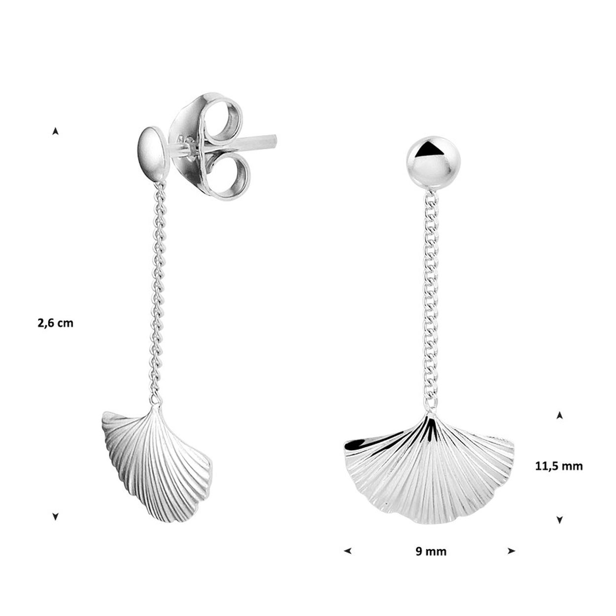 Gerhodineerd zilveren oorhangers uitgevoerd met een ginkgo blad van 9x11.5mm. Info: Gerhodineerd zilver is door de rhodiumlaag beter bestand tegen verkleuren en krassen.