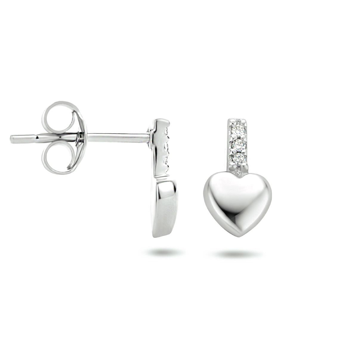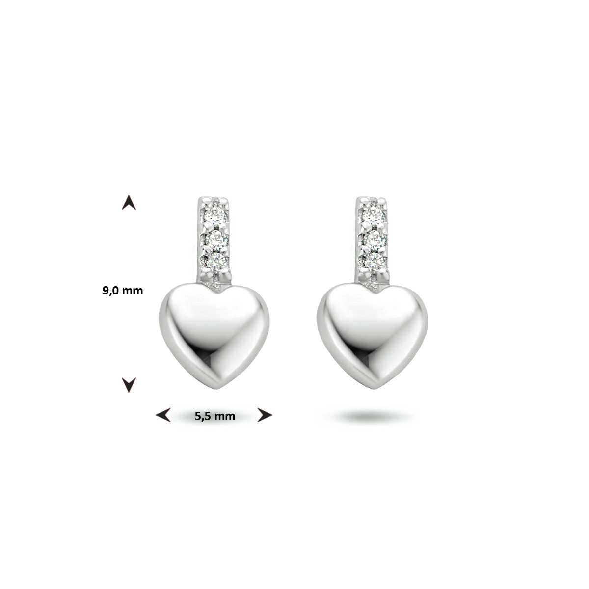 Gerhodineerd 925 zilveren oorknoppen uitgevoerd met een hartje en een schitterende zirkonia rij. De oorknoppen hebben een afmeting van 9x5.5mm.