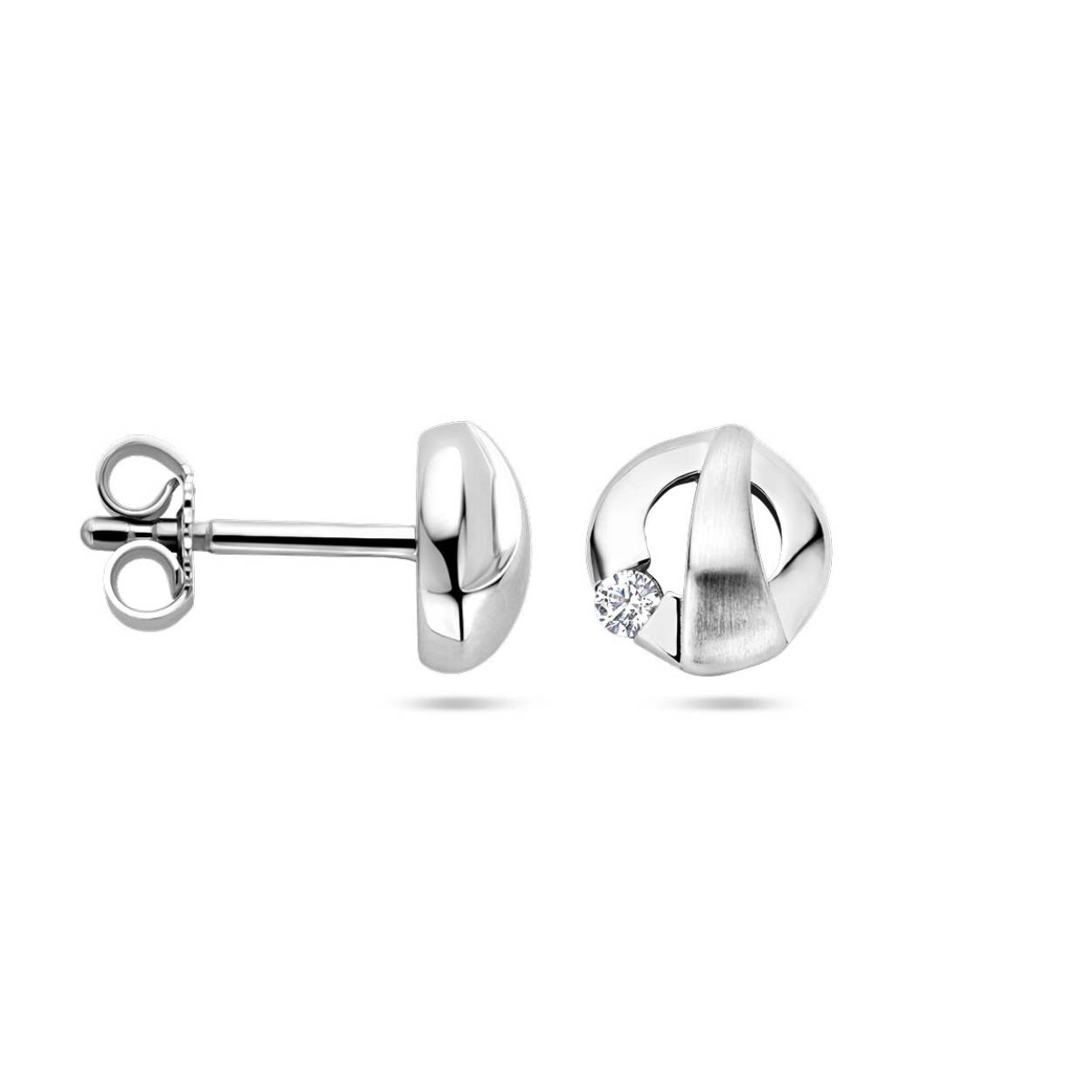 Gerhodineerd 925 zilveren oorknoppen uitgevoerd met zirkonia. De oorknoppen hebben een diameter van 7.5mm.