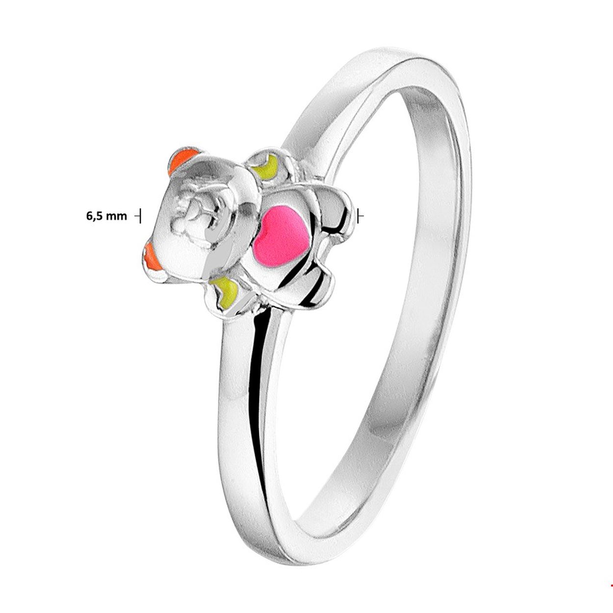 Deze schattige gerhodineerd zilveren met emaille beer ring heeft een breedte van 6.5mm. De ring is te combineren met bijpassende sieraden zodat er een leuke set van te maken is. Tip: Leuk om kado te geven aan kleine dametjes die willen stralen met schattige sieraden. Info: Gerhodineerd zilver is door de rhodiumlaag beter bestand tegen verkleuren en krassen.