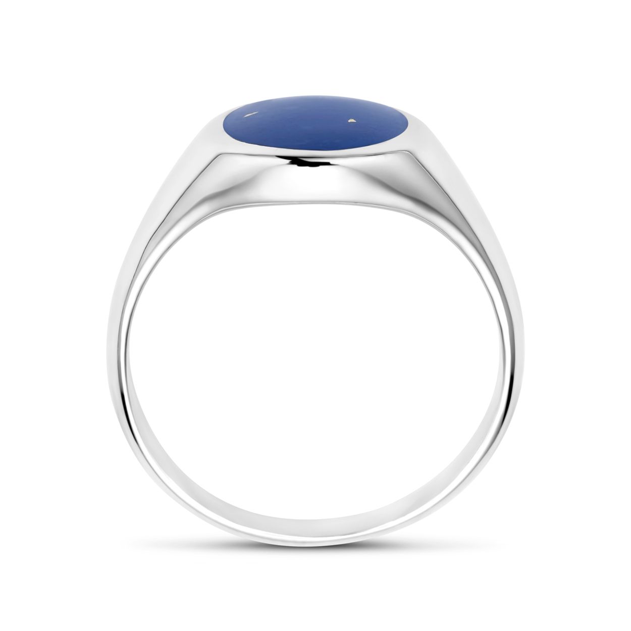 Gerhodineerd 925 zilveren ring uitgevoerd met lapis. De ring heeft een breedte van 11.5mm.