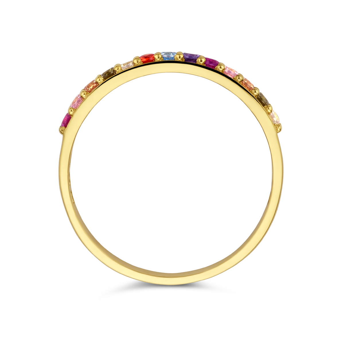 14k Geelgouden ring uitgevoerd met gekleurde zirkonia.