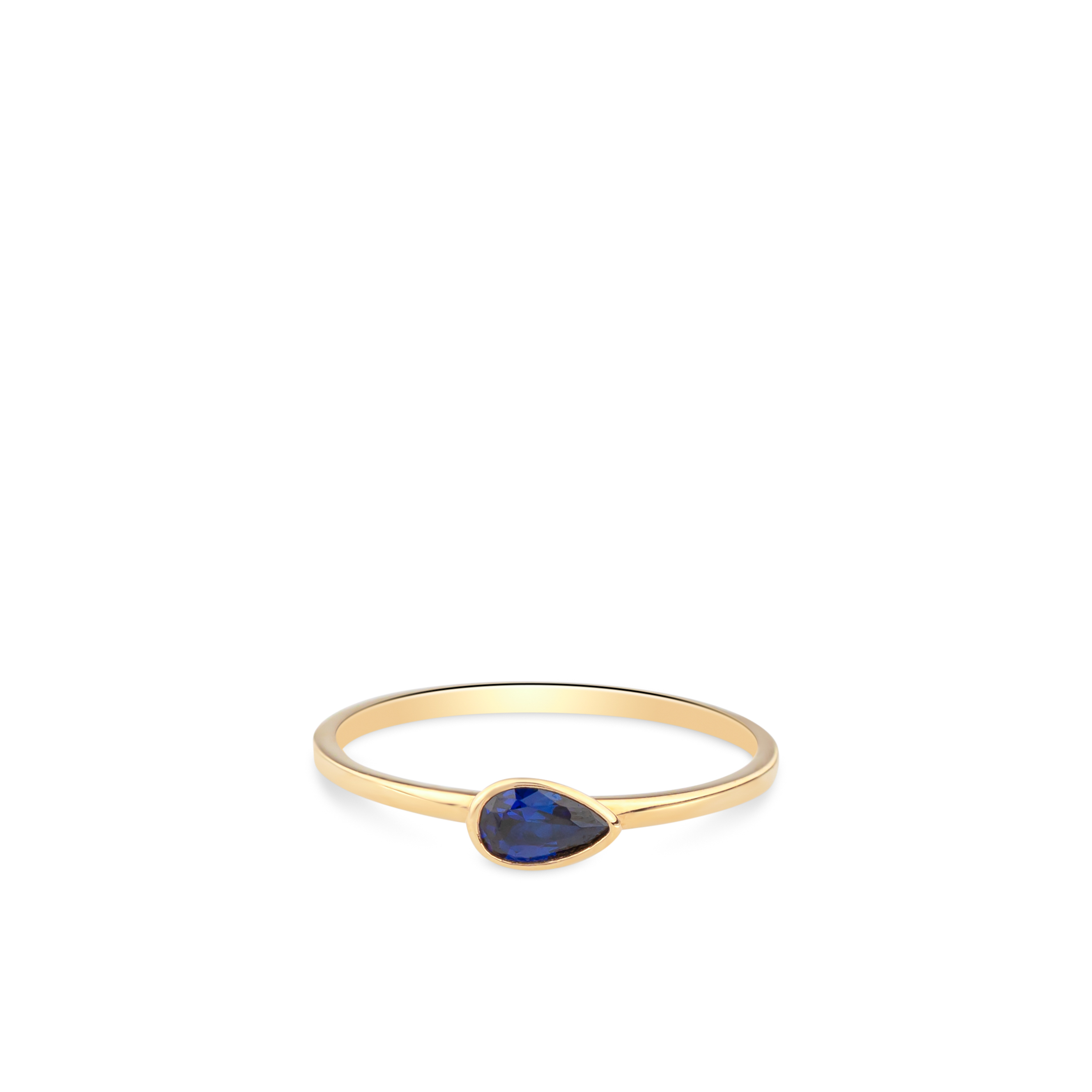 14 Kt geelouden ring met donkerblauwe zirconia maat 54
