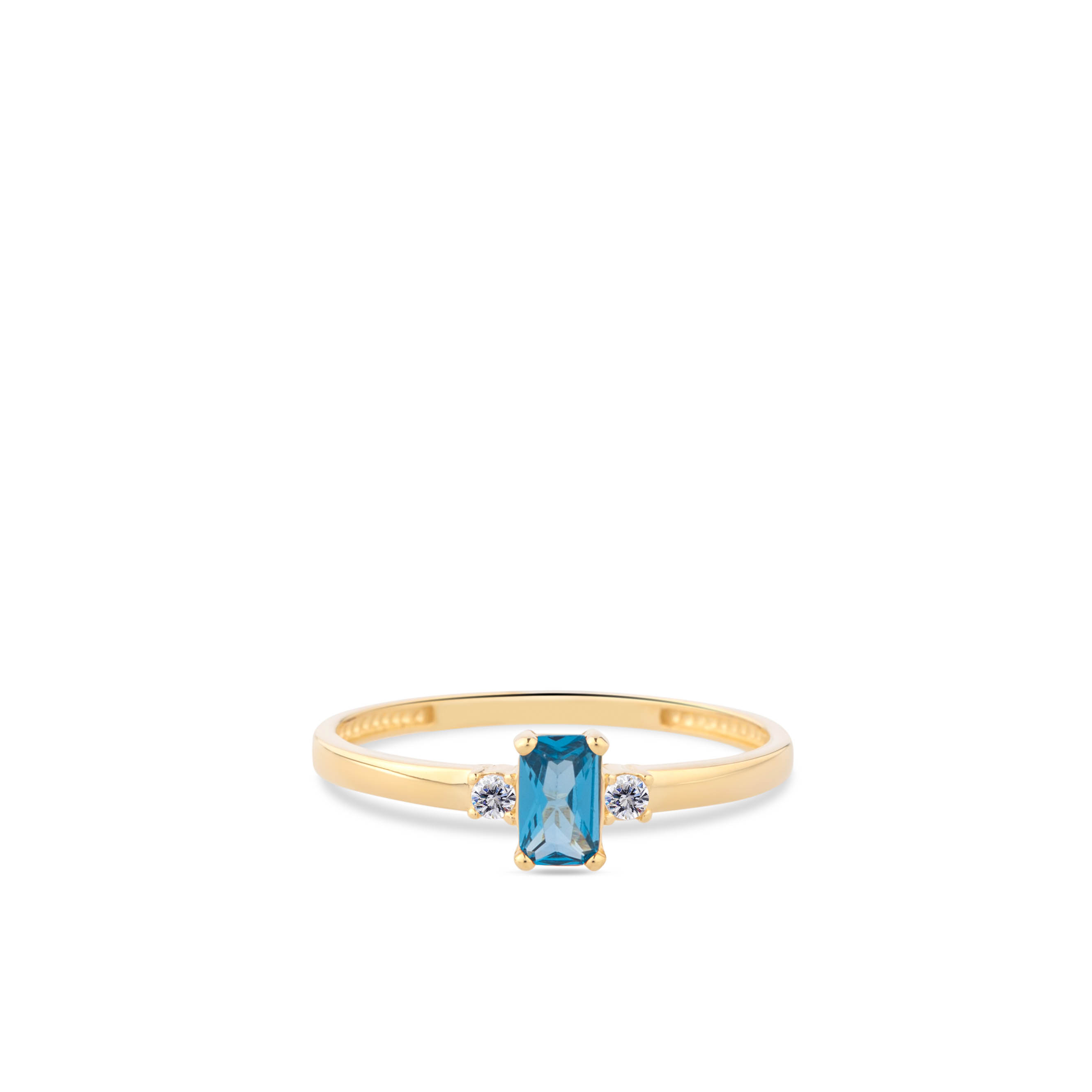 Swing Jewel Happiness 14 kt geelgouden ring met blauwe en witte zirconia maat 54