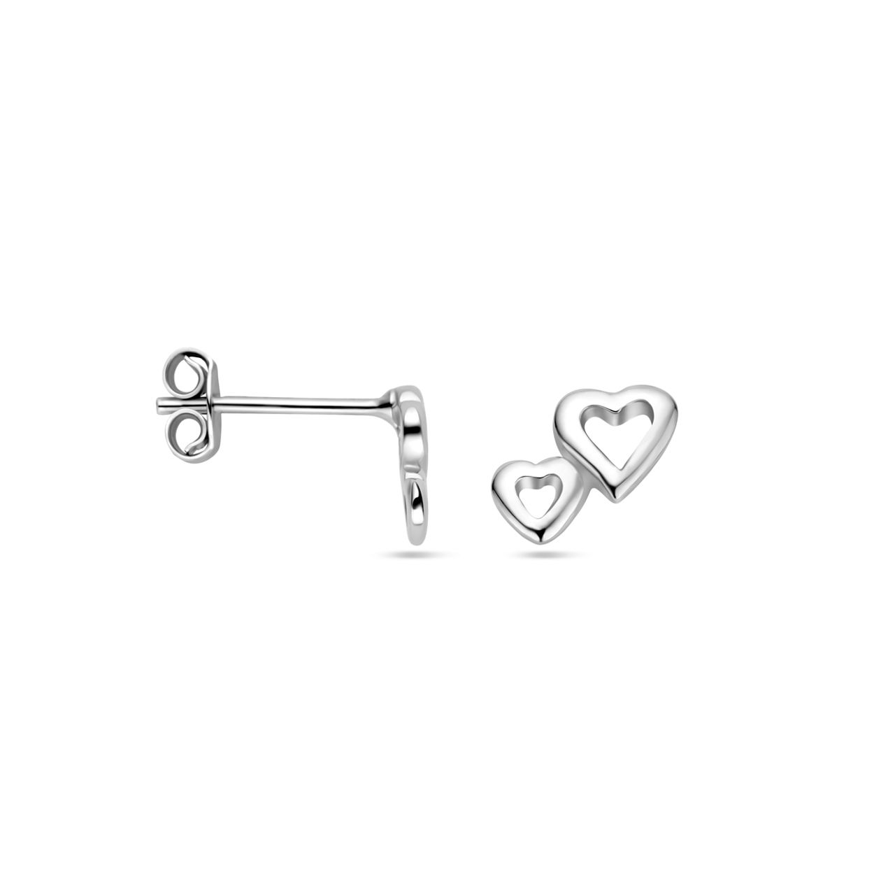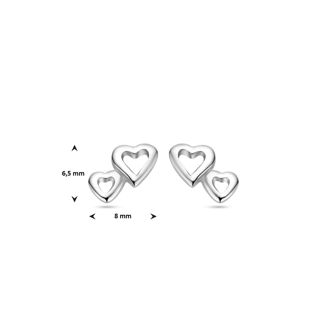 Gerhodineerd 925 zilveren oorknoppen uitgevoerd in de vorm van een hartje. De oorknoppen hebben een afmeting van 6.5x8mm.